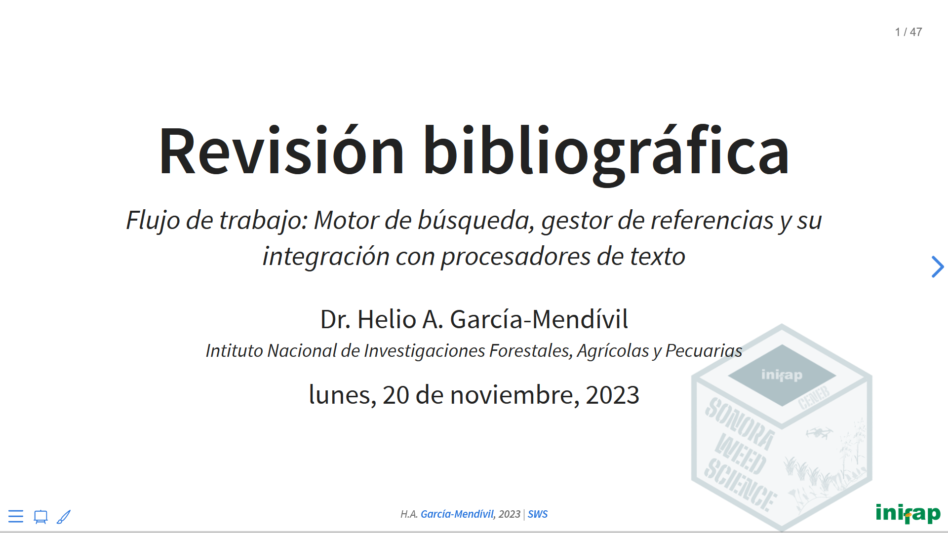 Presentación sobre revisión bibliográfica