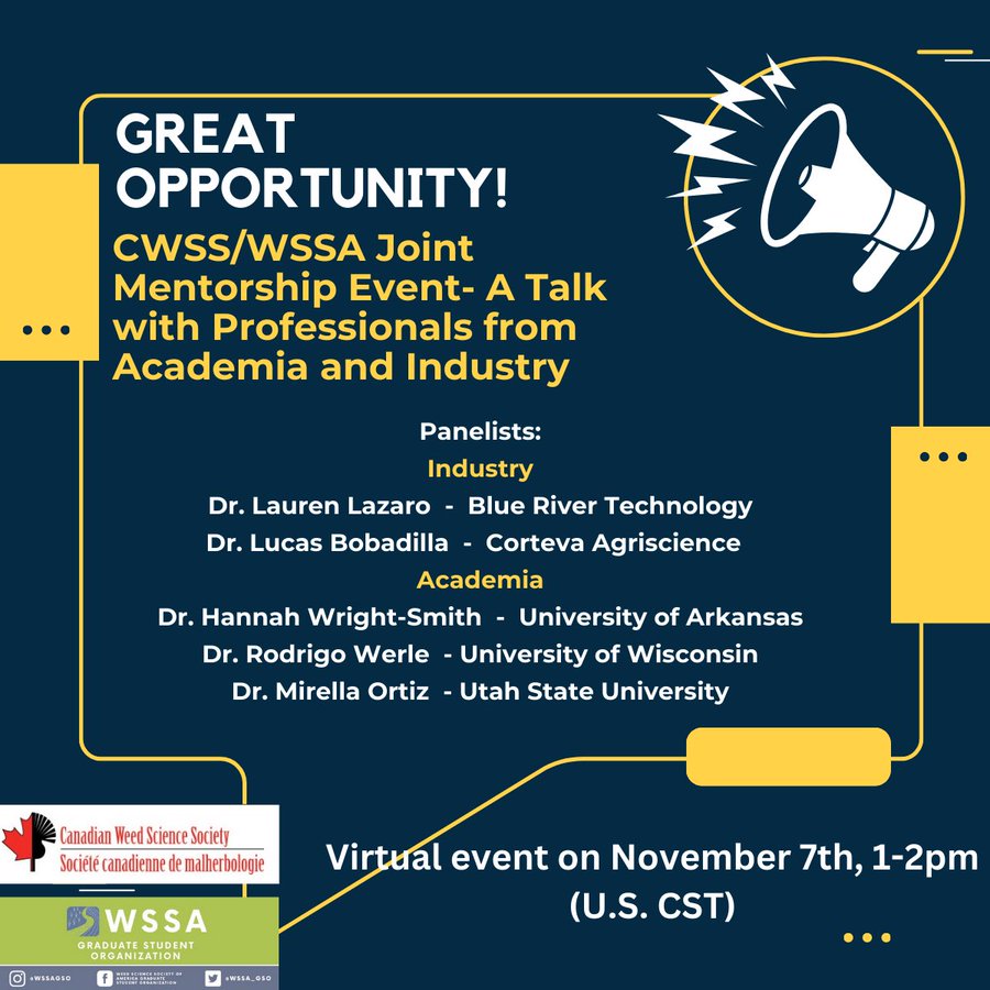 Gran oportunidad para estudiantes de posgrado: Evento conjunto de mentoría CWSS/WSSA para conocer más sobre experiencias en la industria y la academia por parte de panelistas